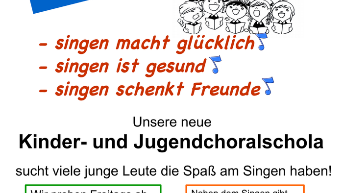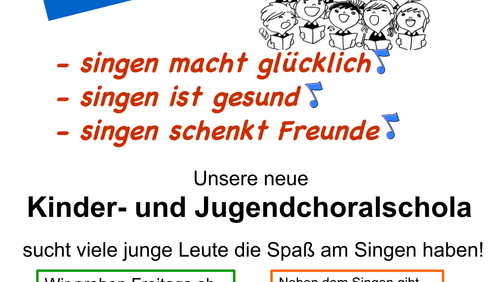 Die neue Kinder- & Jugenchoralschola der Pfarrei, sucht junge Leute die Spaß am Singen haben.