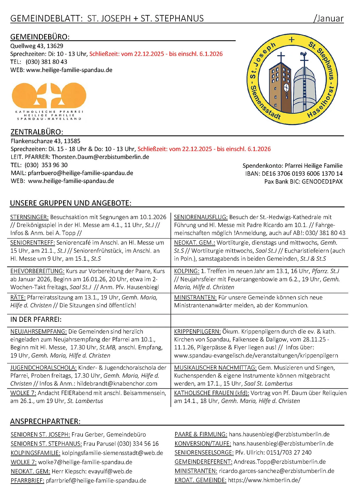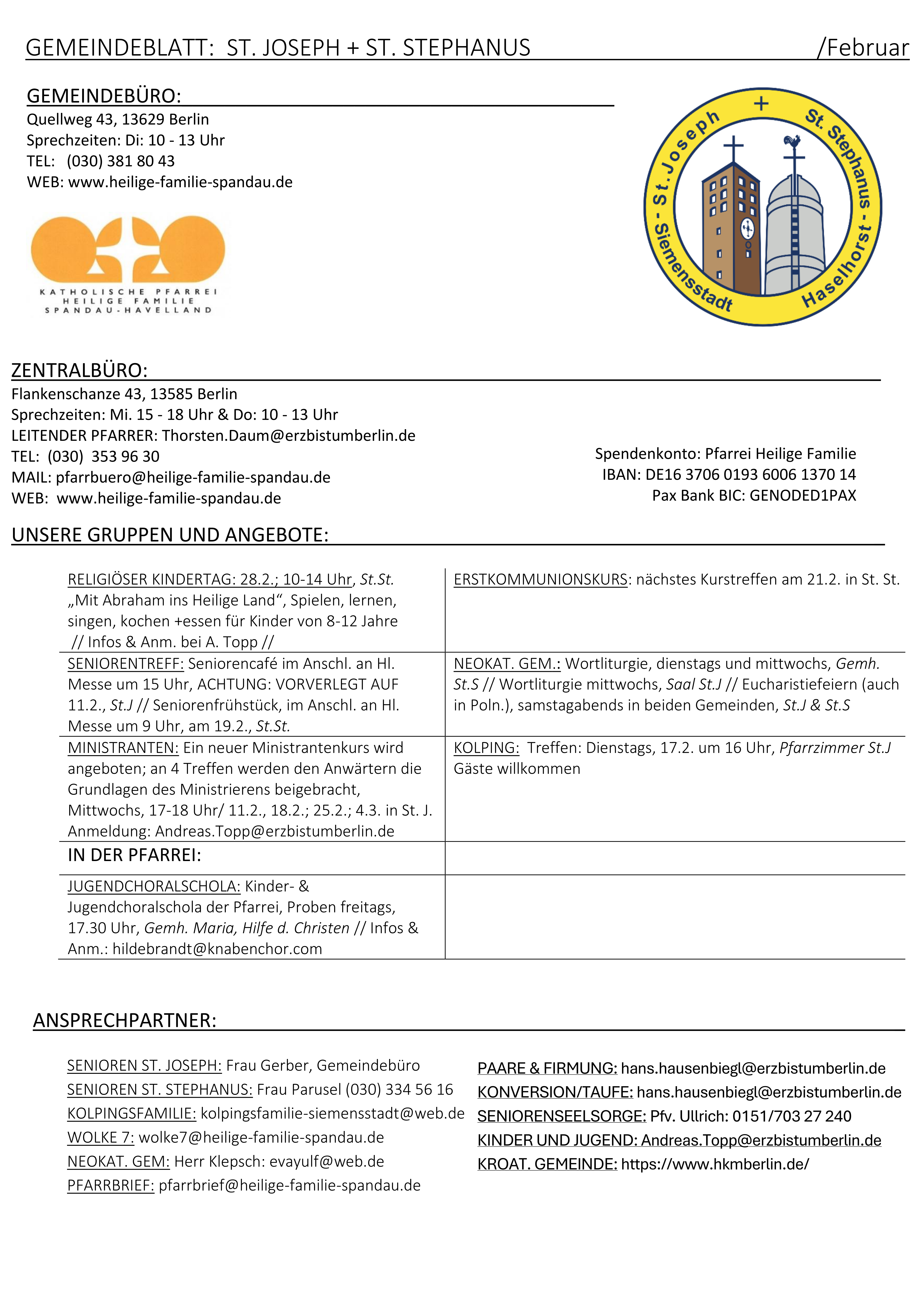 Kontakt Pfarrei Hl. Familie